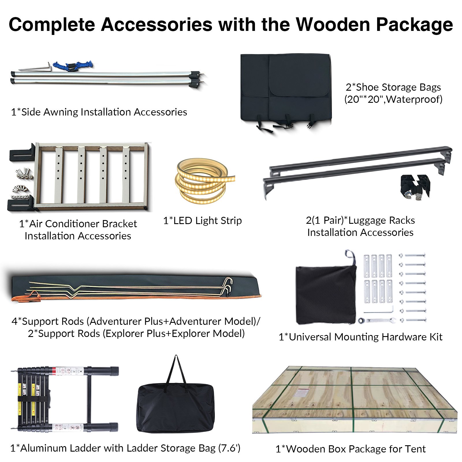 6. [4-Season Offroad Roof Tent with Complete Accessories in the Wooden Package] - The rugged all-weather universal outdoor roof top tent for year-round adventures is equipped with pre-assembled components with clear instructions effortless even for first-time users.